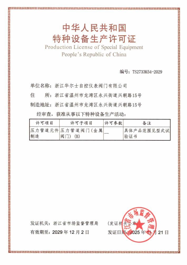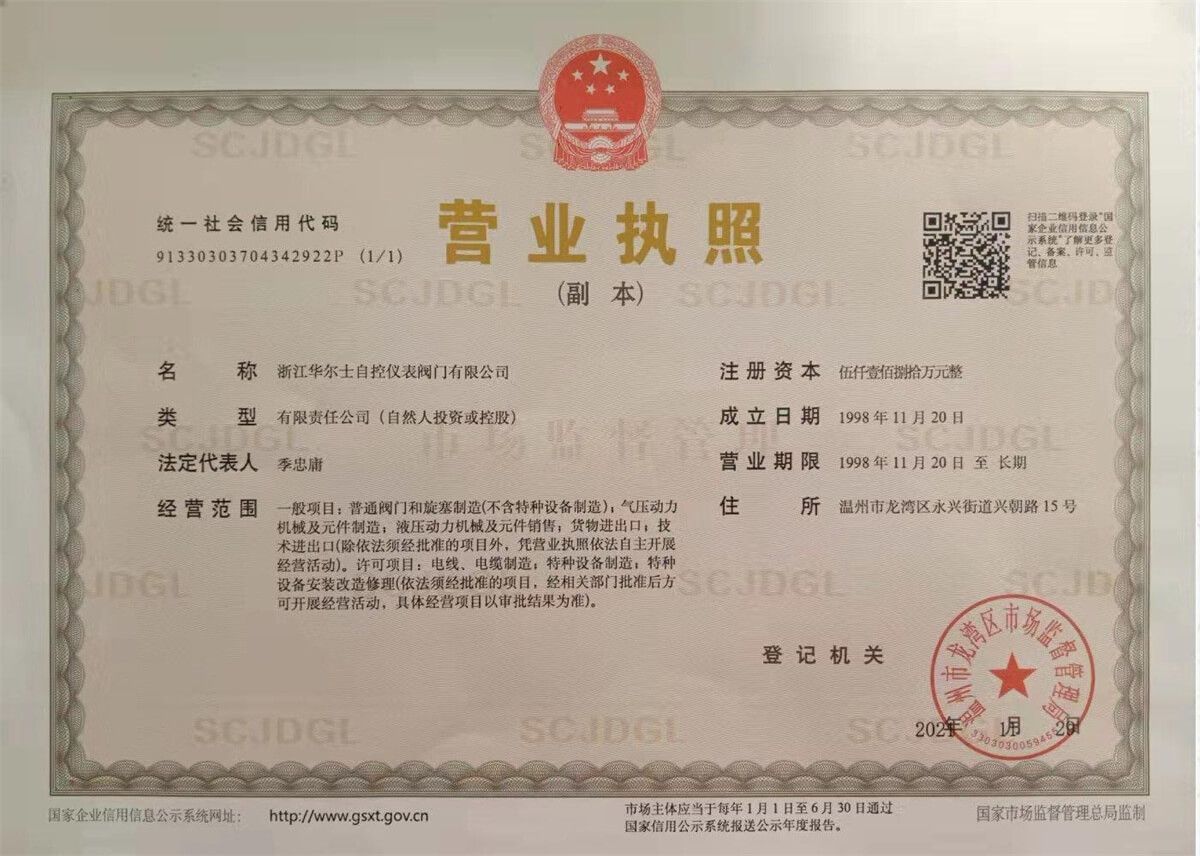 浙江華爾(ěr)士自控儀表閥(fá)門有限公司